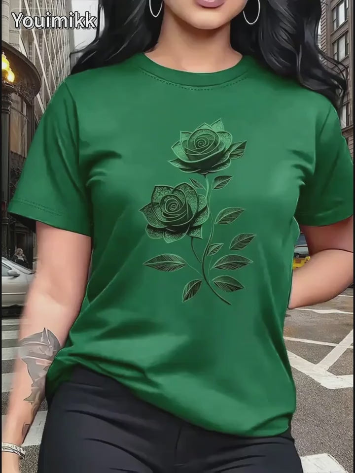 Women'S Casual T-Shirt | Unique Rose Pattern Print