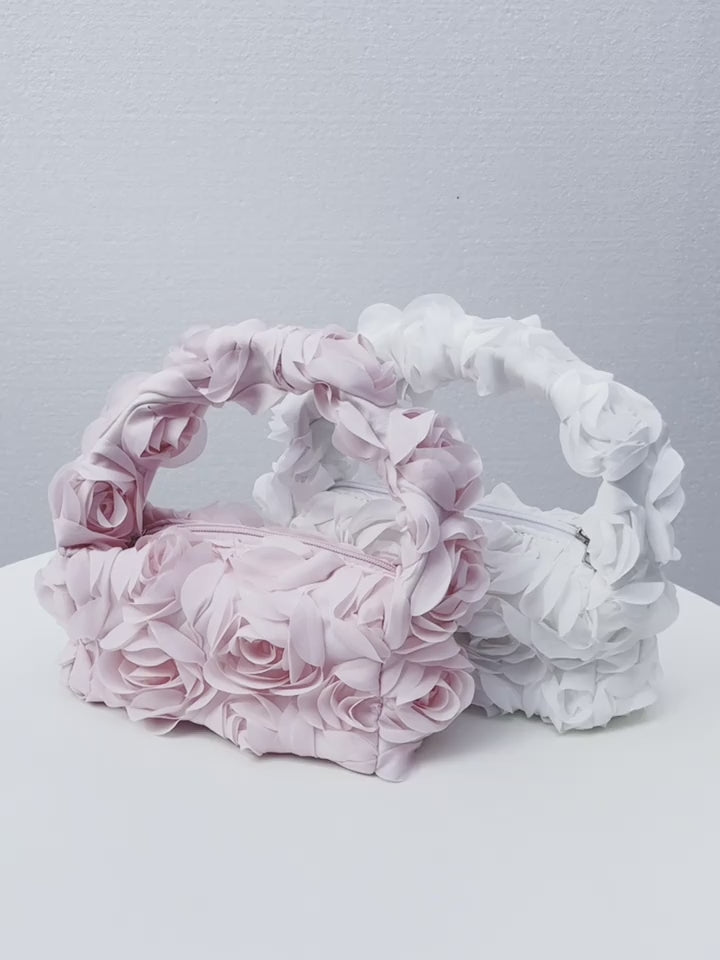 Unique Handle Design| Elegant Rose Pattern Evening Clutch Chic Polyester Bag with Zip Closure, Perfect for Weddings & Parties - Sweet & Ro tic for Wo on Valentine's Day