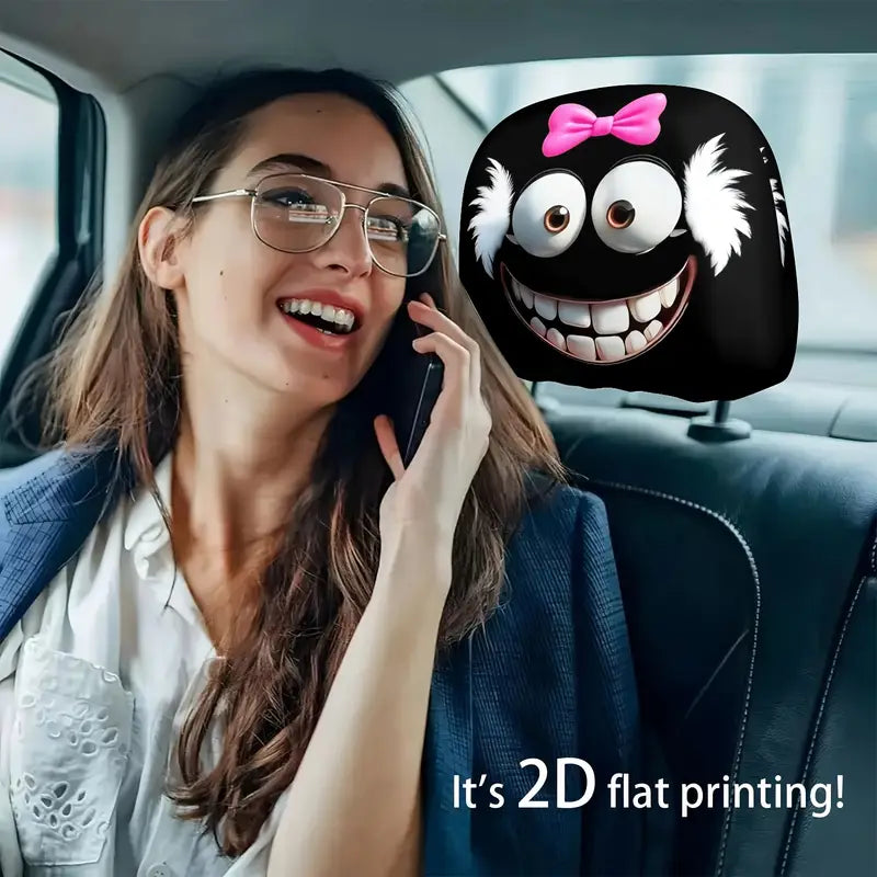2pcs Disney Fun Cartoon Themed Printed Car Seat Cushion Headrest Neck Pillow Cover - Cute Design, Ideal for All Seasons, Perfect Halloween