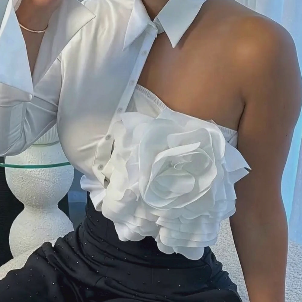 Elegant Women's Top Shirt with Ruffled Neckline Offshoulder Styling