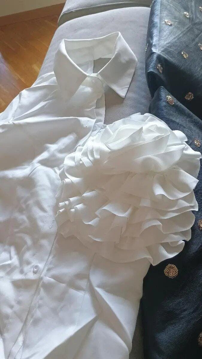 Elegant Women's Top Shirt with Ruffled Neckline Offshoulder Styling