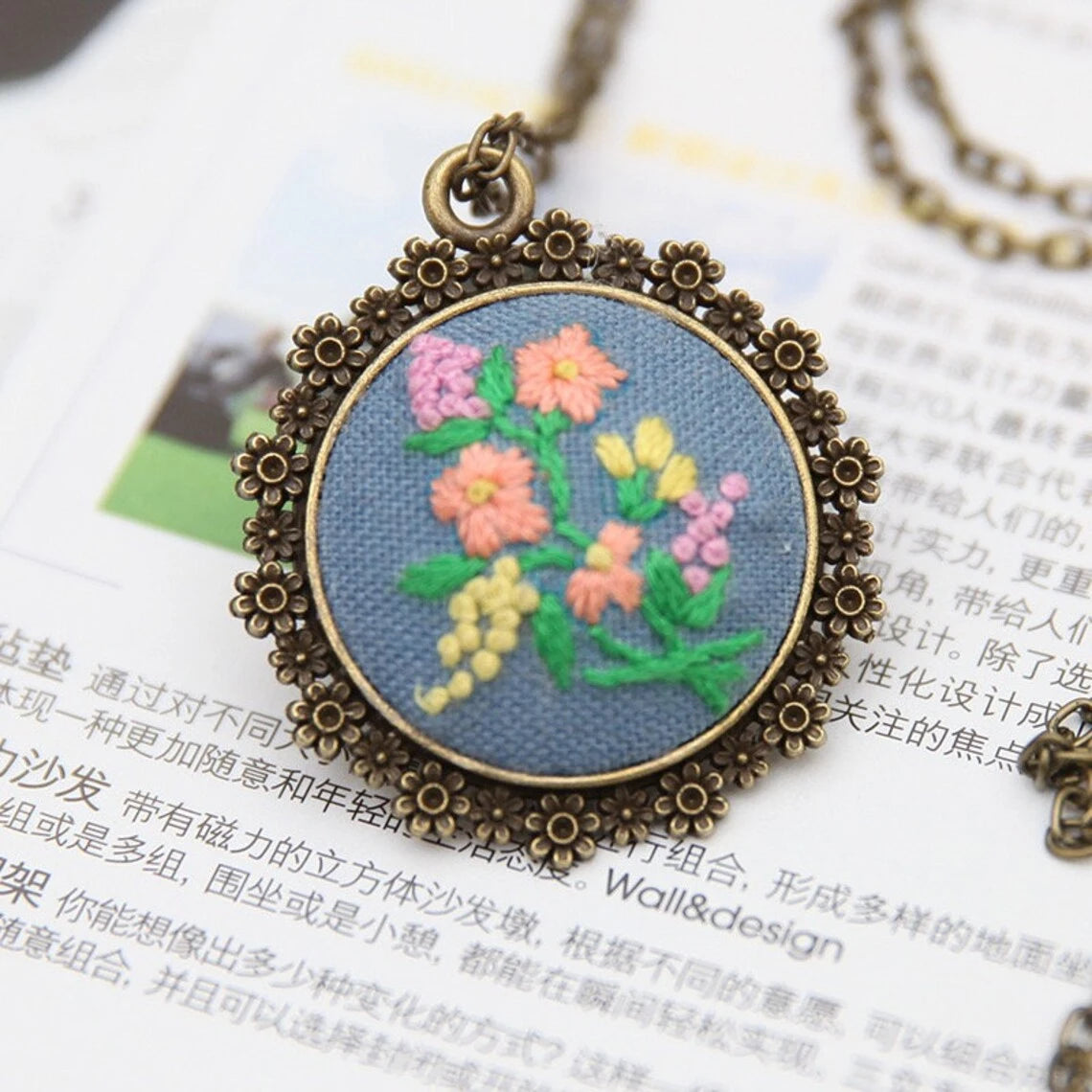 Elevate your style with this exquisite collection of hand-embroidered pendant necklaces, each a masterpiece of intricate craftsmanship. These timeless accents are not just accessories; they're statements that effortlessly elevate any outfit.