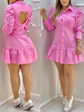 Heart Cut-Out Back Long Sleeve Shirt Dress
