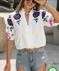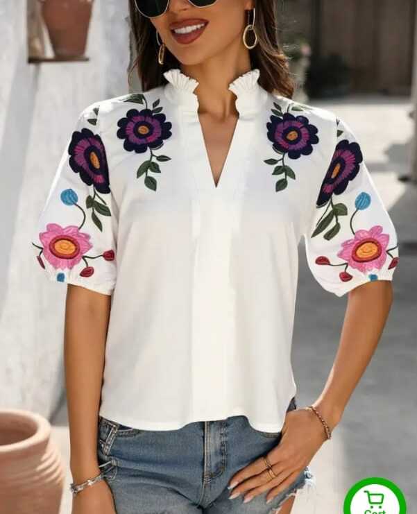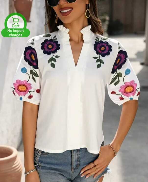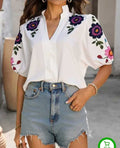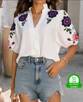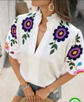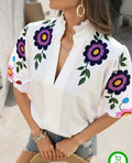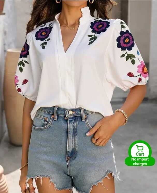 New Fasgion V- neck Short Sleeved Women hand paintedTop