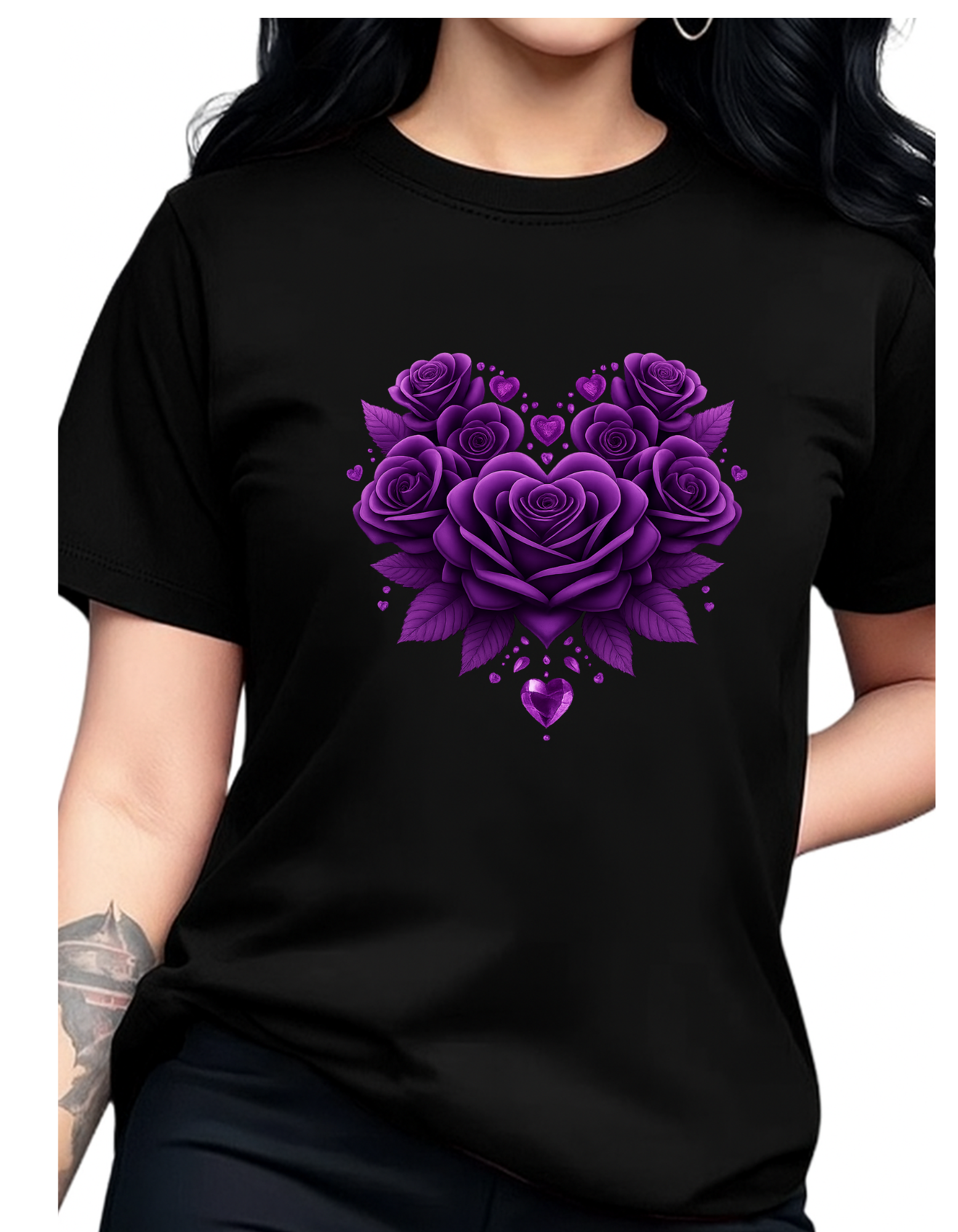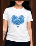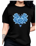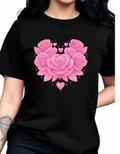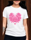Women'S Casual Floral Heart Print Round Neck T-Shirt,