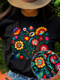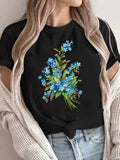 Women's Casual Short Sleeve T-Shirt with Blue Forget-Me-Not Floral Print,