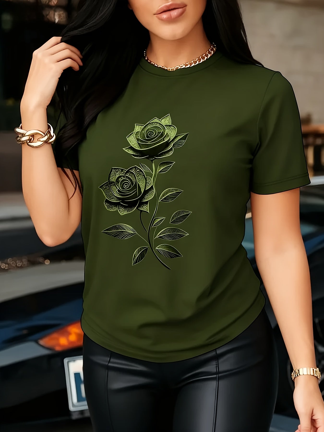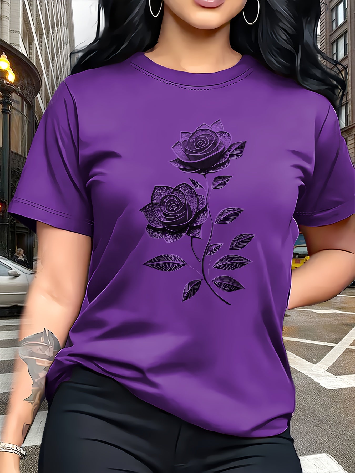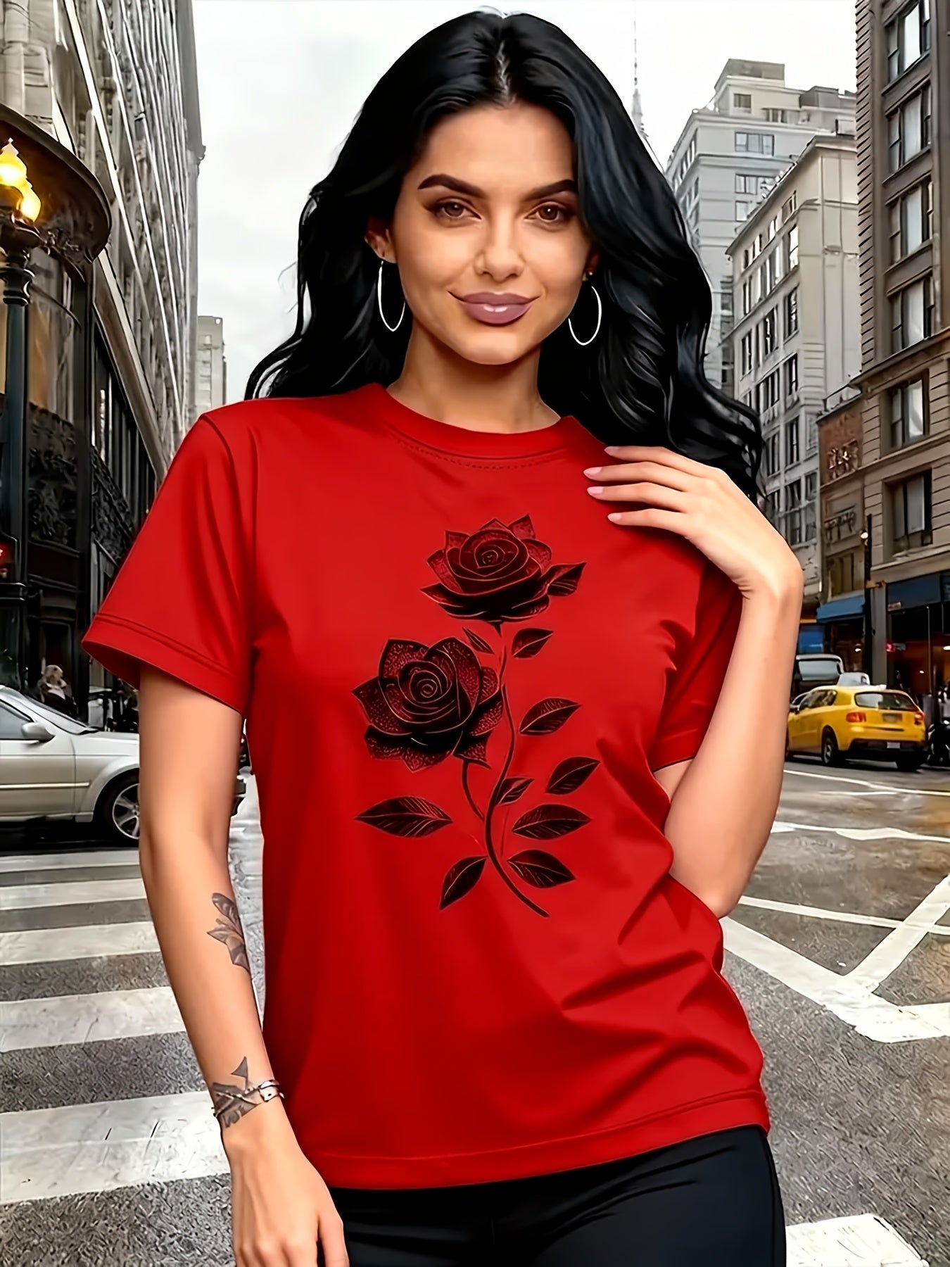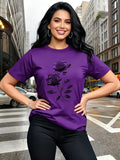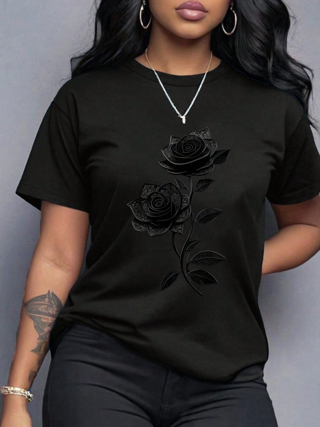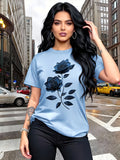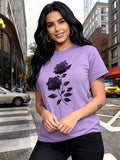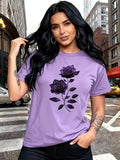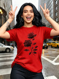 Women'S Casual T-Shirt | Unique Rose Pattern Print