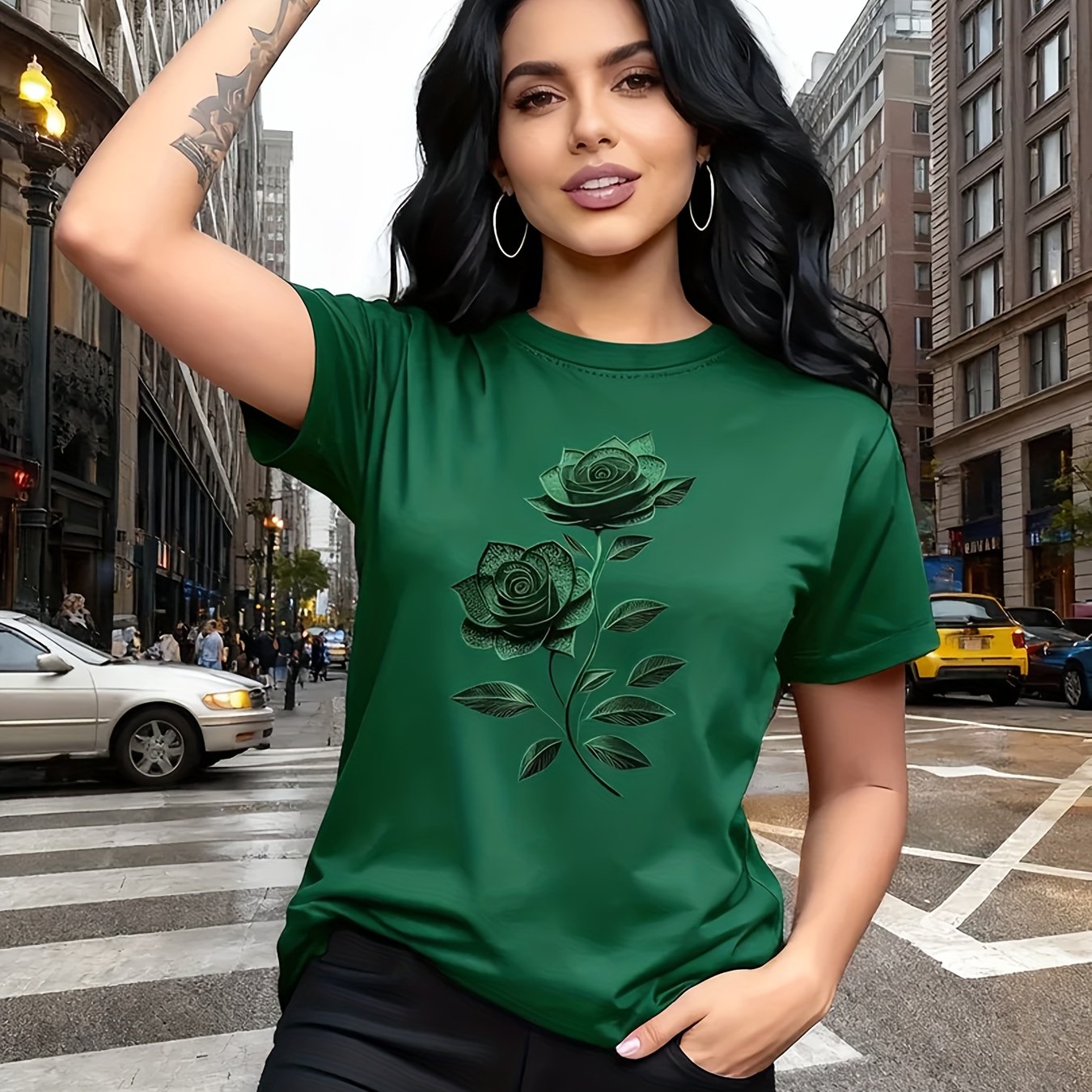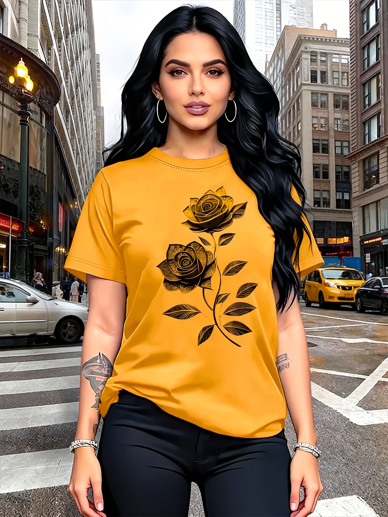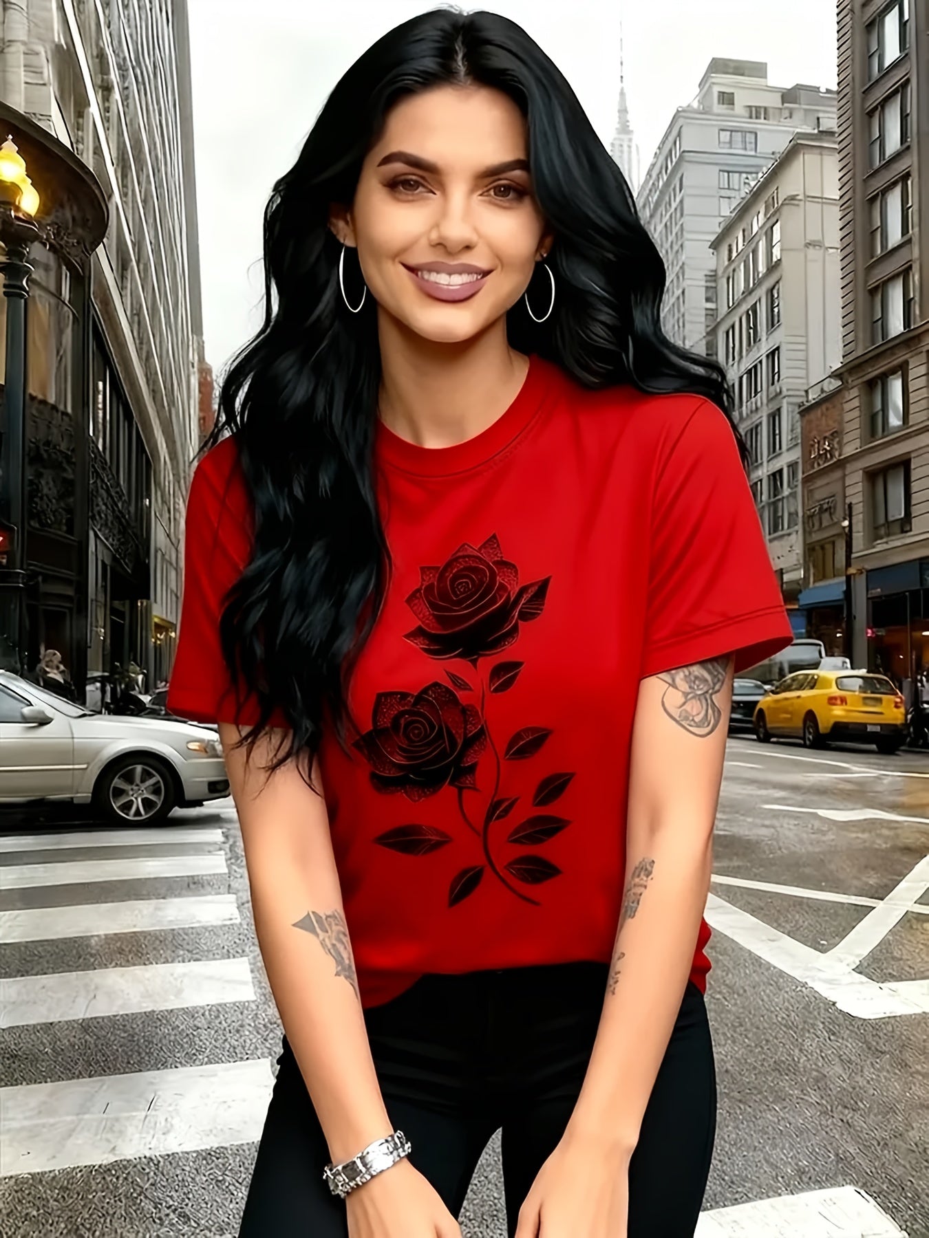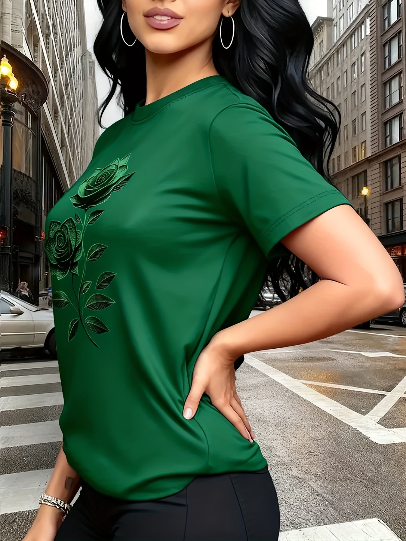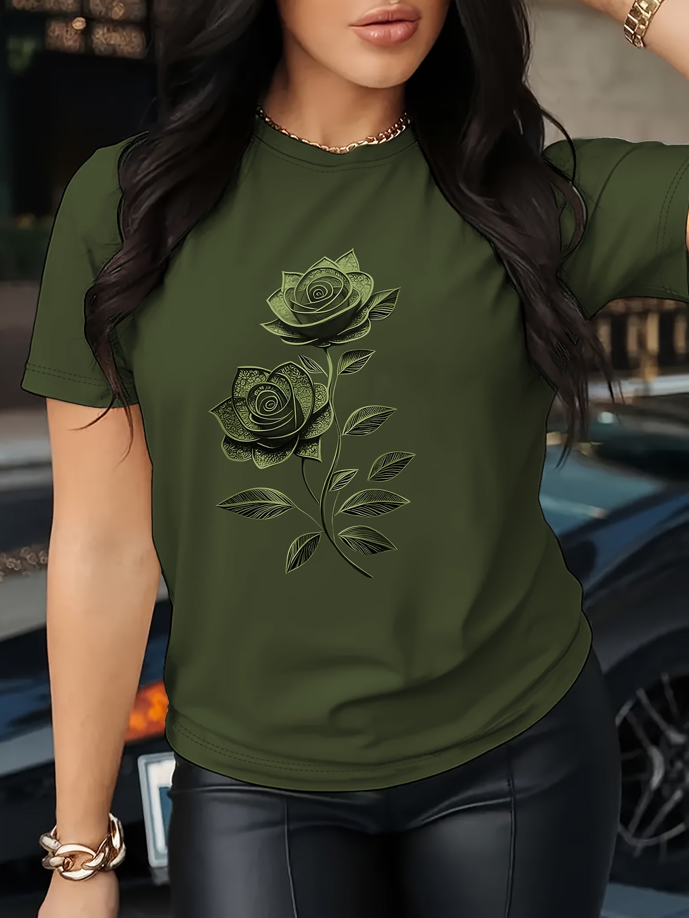 Women'S Casual T-Shirt | Unique Rose Pattern Print
