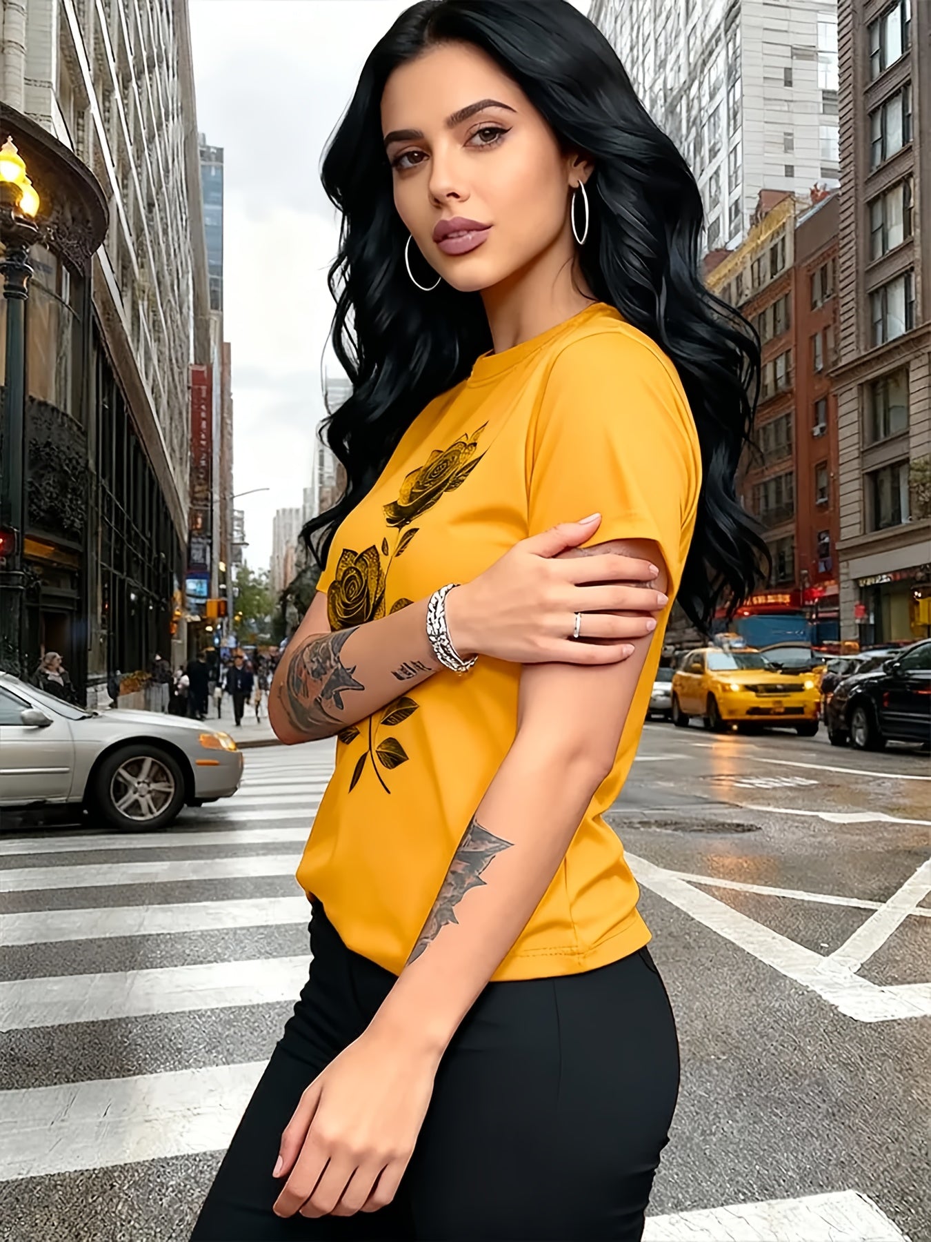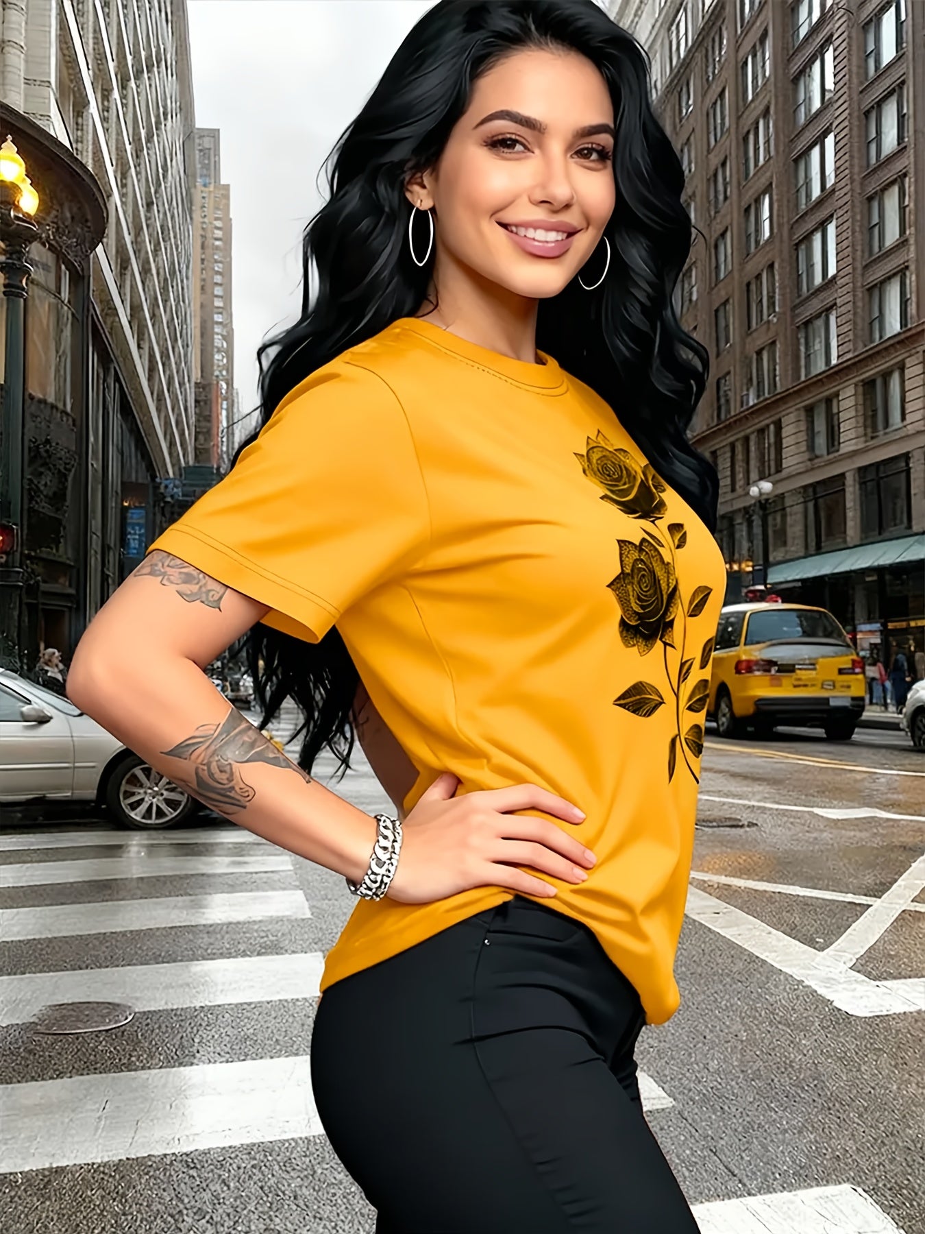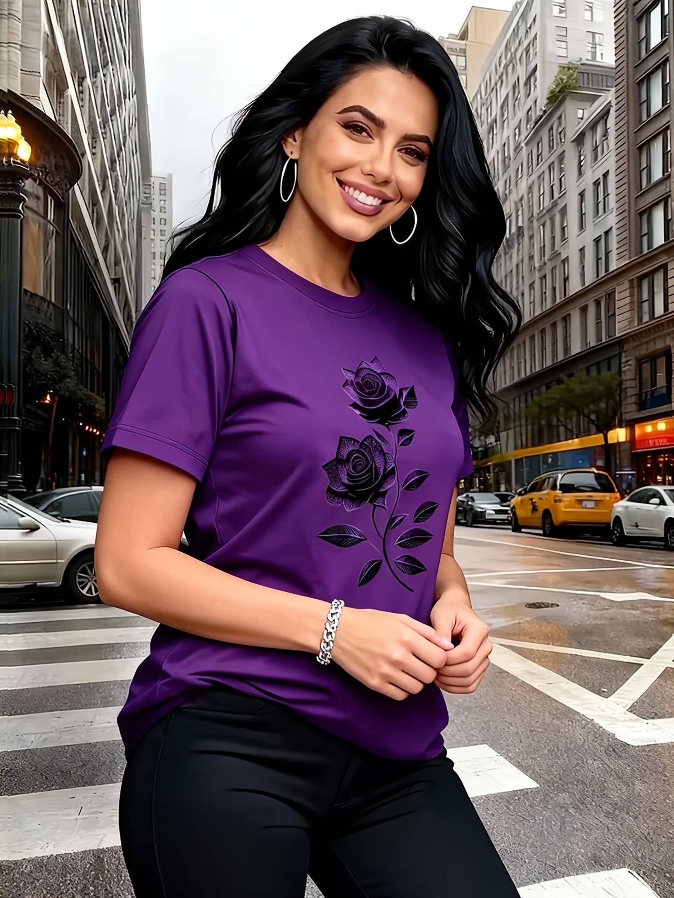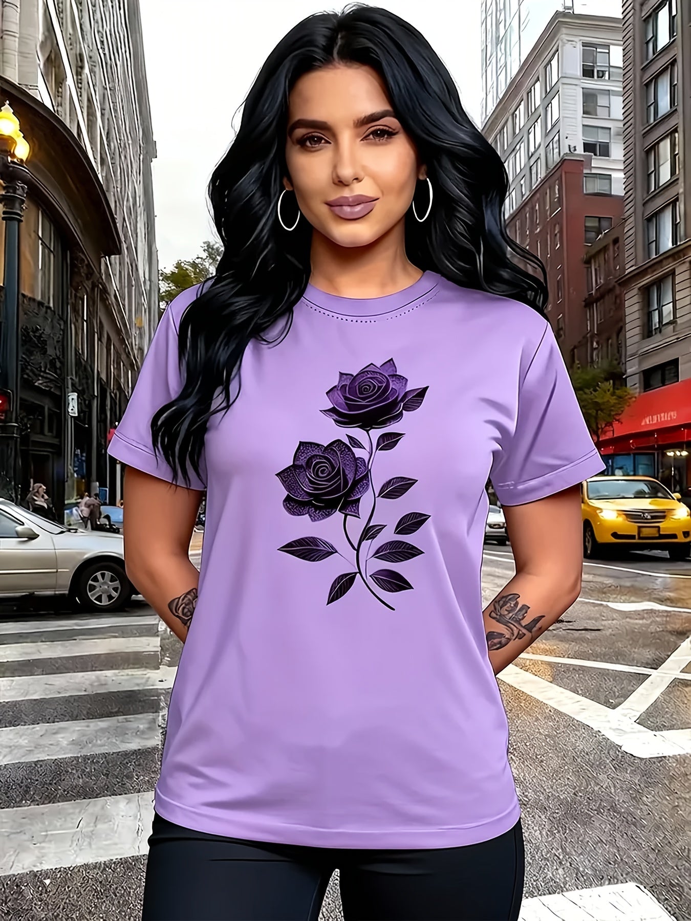 Women'S Casual T-Shirt | Unique Rose Pattern Print