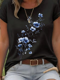 Women'S Stretchy Casual T-Shirt with Cherry Blossom & Birds Design